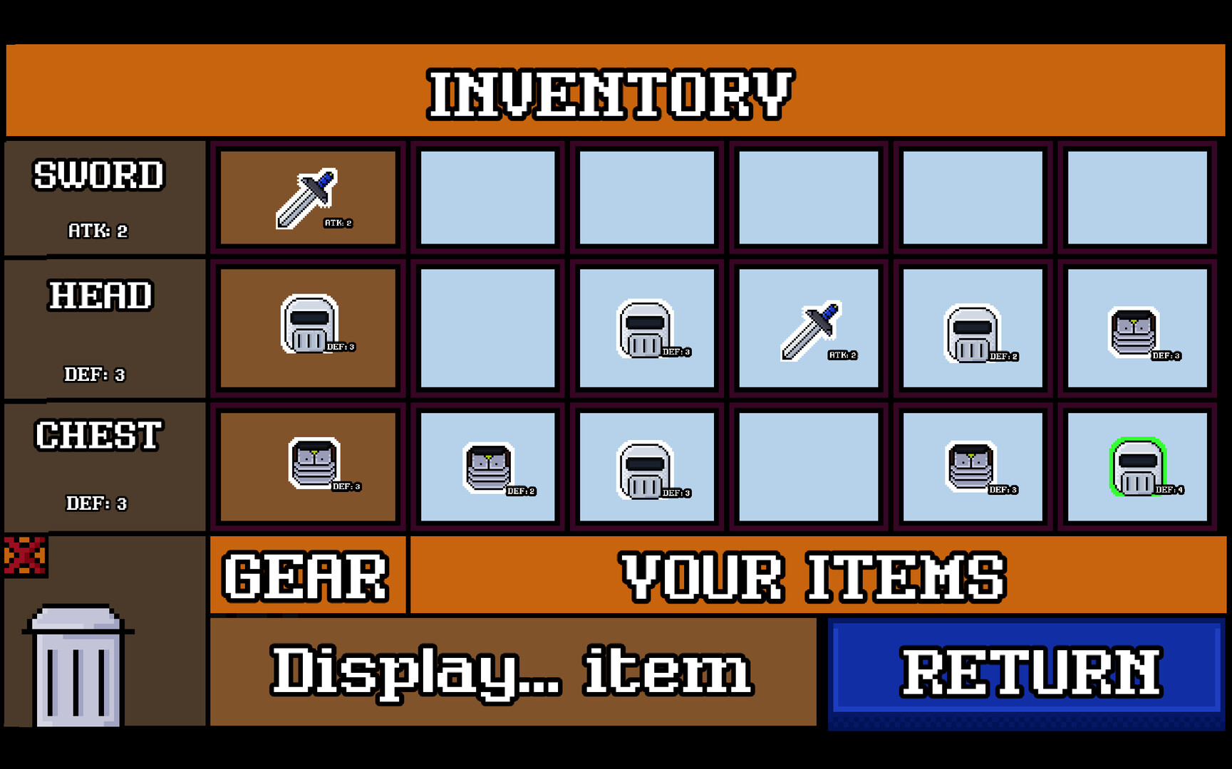 A full-screen terminal landing screen provides access to save management, cross-slot lifetime statistics, achievement tracking via direct Steam queries, the global leaderboard, a built-in how-to-play guide, versioned patch notes, and credits. The menu always renders in the default green theme regardless of your active protocol.CREDITS